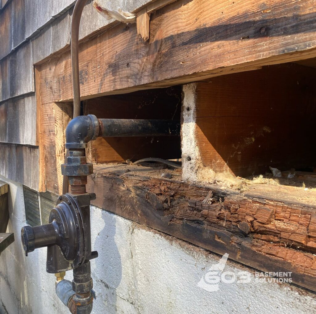 Our seasonal soil cycles in New Hampshire โ wet springs, humid summers, and freezing winters โ put homes under constant stress. Frost heaves push against the foundation, while moisture creeps into untreated wood. Add in the presence of termites and carpenter ants in towns like Portsmouth, Exeter, and Hampton, and itโs no wonder sill rot is one of the most common structural issues we see in older homes.